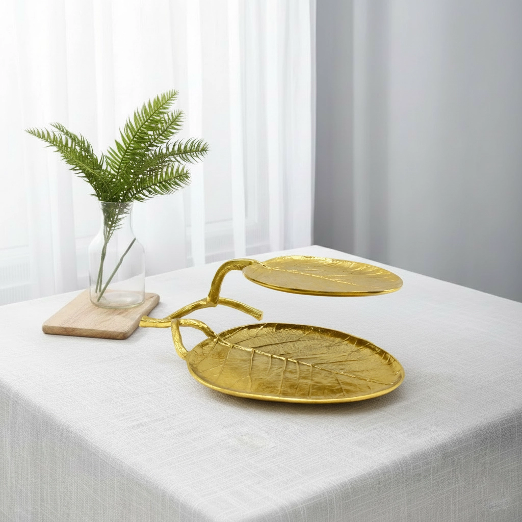 Our premium Leaf-Inspired Trays are a testament to refined craftsmanship and artistic detailing. Each piece is meticulously cast from high-grade aluminum, ensuring durability while remaining lightweight. Finished with your choice of Gold Plating or Shiny Nickel, these trays exude sophistication and serve as both decorative accents and functional statement pieces.